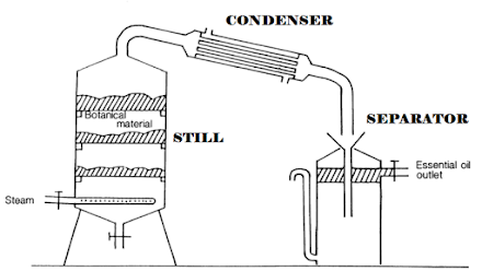 Extraction of essential oil by steam distillation